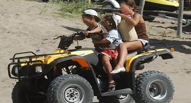 En la mayoría de los casos, circulan sin casco. A esa misma altura pero sobre la playa este diario detectó imprudencias y faltas graves: hasta cinco personas en un cuatriciclo y nenes al volante llevando de acompañantes a otros nenes. Durante la recorrida, no se vieron controles.