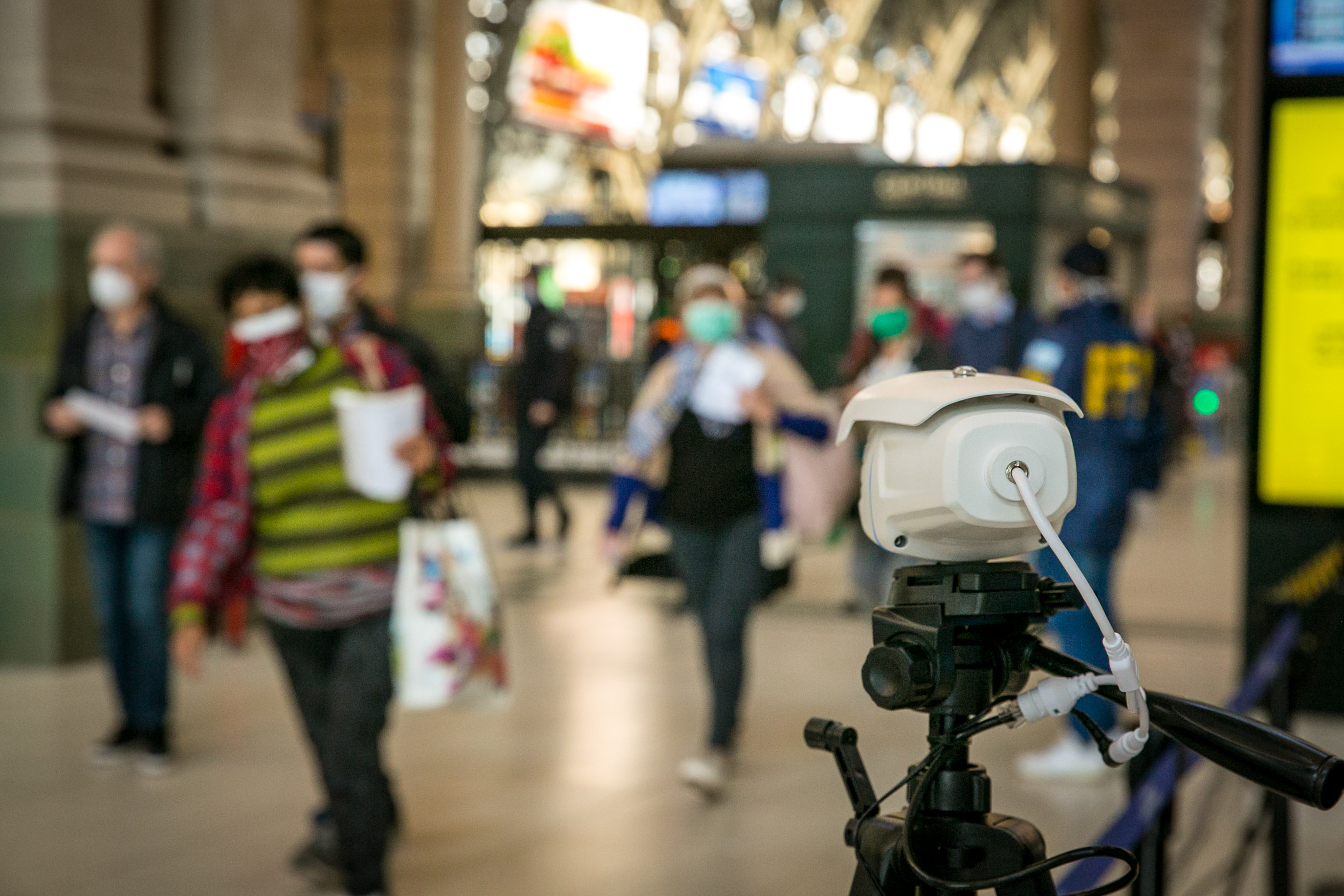 La semana pasada se puso en funcionamiento el mismo sistema que detectará la fiebre de los pasajeros como uno de los síntomas de COVID-19, en el Centro de Trasbordo de Constitución que se encuentra en el ingreso al subte a cargo de la Ciudad de Buenos Aires y en los próximos días se completará con las cámaras en estación de tren. El mismo funciona con un sensor detector de refrigeración de una distancia focal del lente 6.5 mm. Además admite modos para medición térmica por temperatura máxima global, temperatura mínima, seguimiento de temperatura media, punto, línea, rectángulo y área irregular.