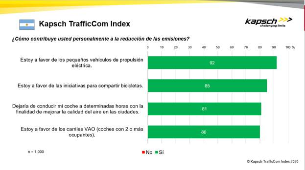Según los datos desarrollados por el Índice Kapsch TrafficCom 2020, el 81% de los conductores argentinos estaría dispuesto a no circular en su propio auto a determinadas horas del día para reducir la contaminación y mejorar la calidad del aire en la ciudad.