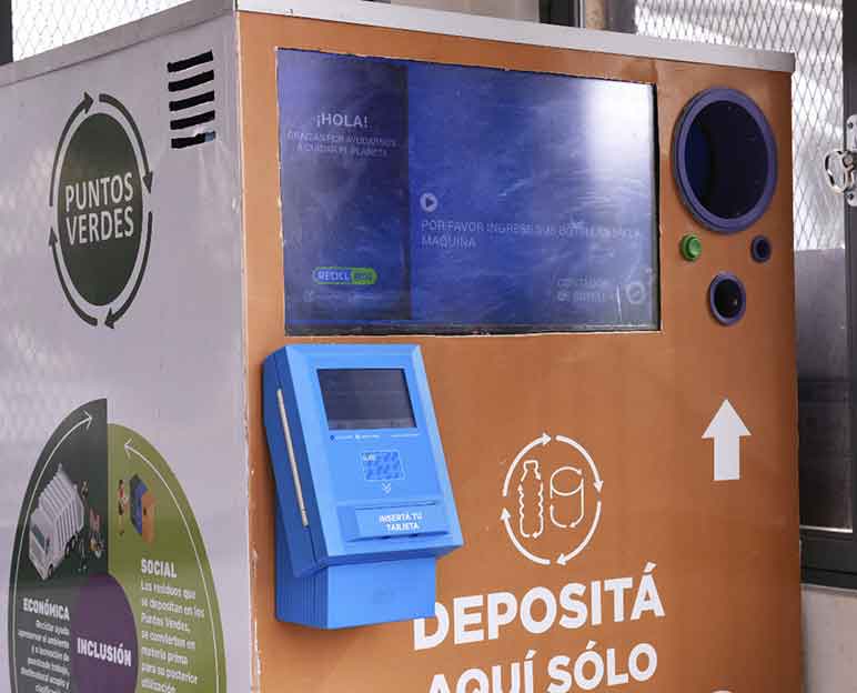 En una máquina denominada EcoCanje los usuarios pueden depositar las botellas y generar créditos para cambiar por carga en la tarjeta (24 botellas a cambio de 60 pesos de crédito), de vehículos eléctricos y pagar el estacionamiento.