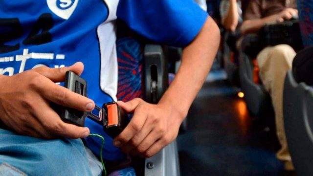 La colocación del cinturón de seguridad es obligatoria para todos los pasajeros en micros de larga distancia antes de iniciar un viaje desde cualquier punto de la Republica Argentina.
