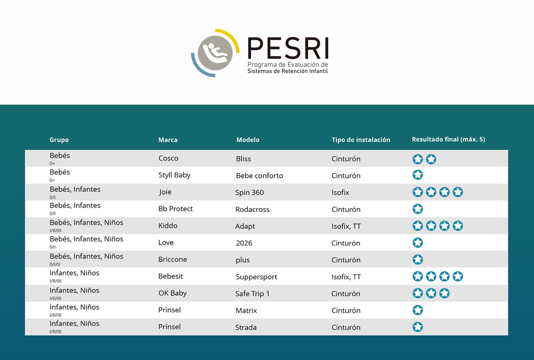 Una nueva ronda de resultados del Programa de Evaluación de Sistemas de Retención Infantil, PESRI, fue presentada con la evaluación del desempeño de seguridad de once Sistemas de Retención Infantil (SRI) que son vendidos en Argentina.