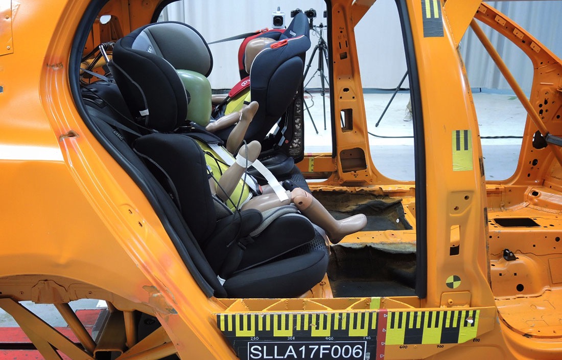 En las pruebas dinámicas se registraron cargas elevadas en el niño, movimientos del dummy indeseables o algunos SRI que colapsaron, lo que resultó en un alto riesgo de lesiones que llevó a puntajes bajos.