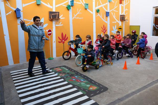 Evelyn Herrera, maestra sala de cuatro, opina: “Es una experiencia muy linda que la realizan con sus triciclos, les arman su propia senda peatonal en el patio de su jardín de infantes. Es una forma muy divertida de aprender y creo que ellos recuerdan mejor las cosas”.