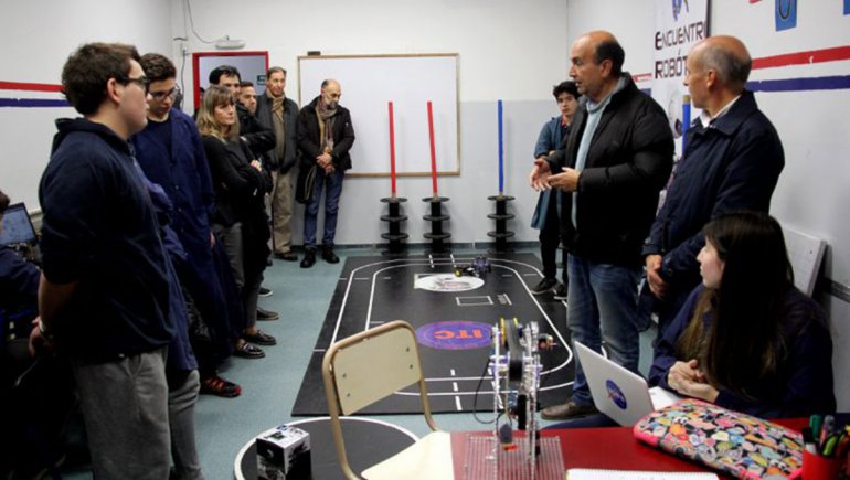 Con la directora del ITC, Claudia Macchi, Bermúdez visitó inicialmente el taller de robótica del curso de tercer año conducido por la profesora Miriam Damm, en el cual los alumnos demostraron el manejo de robots en un circuito a partir del uso de tecnología digital y los conocimientos adquiridos en computación y analítica de datos.