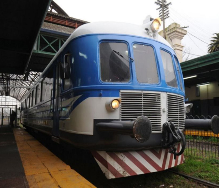 La formación - un coche motor Nohab totalmente remodelado- cubre el trayecto que va desde la estación de 1 y 44 hasta el Policlínico General San Martín.