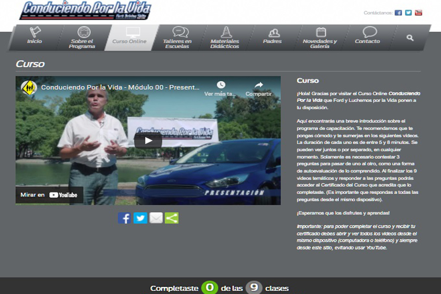 Por séptimo año consecutivo, Luchemos por la Vida pone a disposición del público en general un curso Online de conducción. A través de su portal www.conduciendoporlavida.com invitan “a experimentar este curso para saber cómo moverte seguro en el tránsito y ser un conductor responsable”.