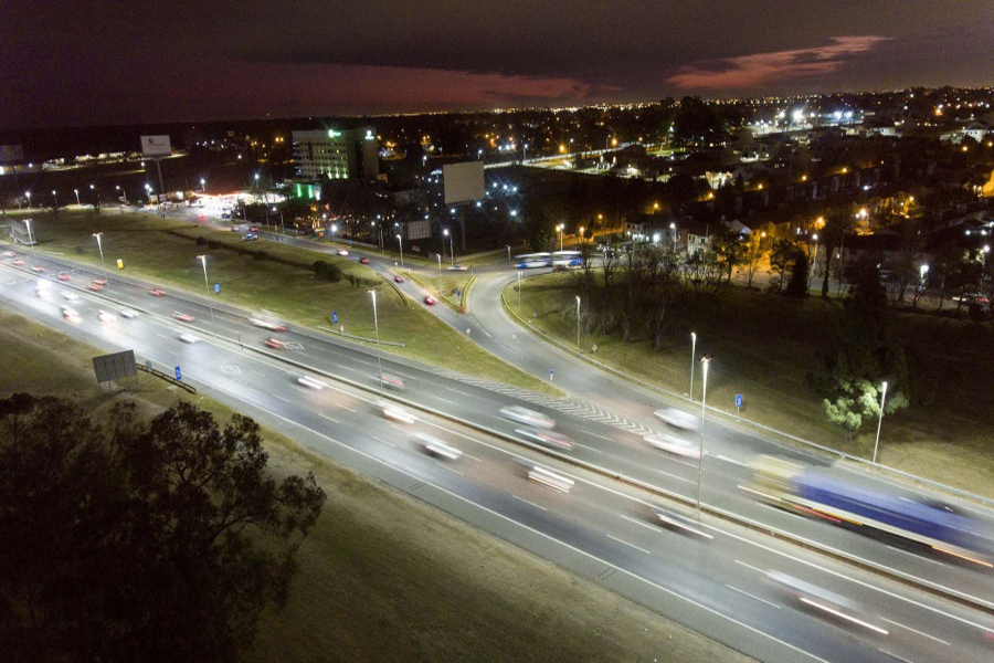 En la autopista Pablo Riccheri que une la Ciudad de Buenos Aires con la autopista Ezeiza-Cañuelas se instalaron 2.400 luminarias con tecnología LED para aumentar la seguridad vial y reducir el consumo eléctrico.
