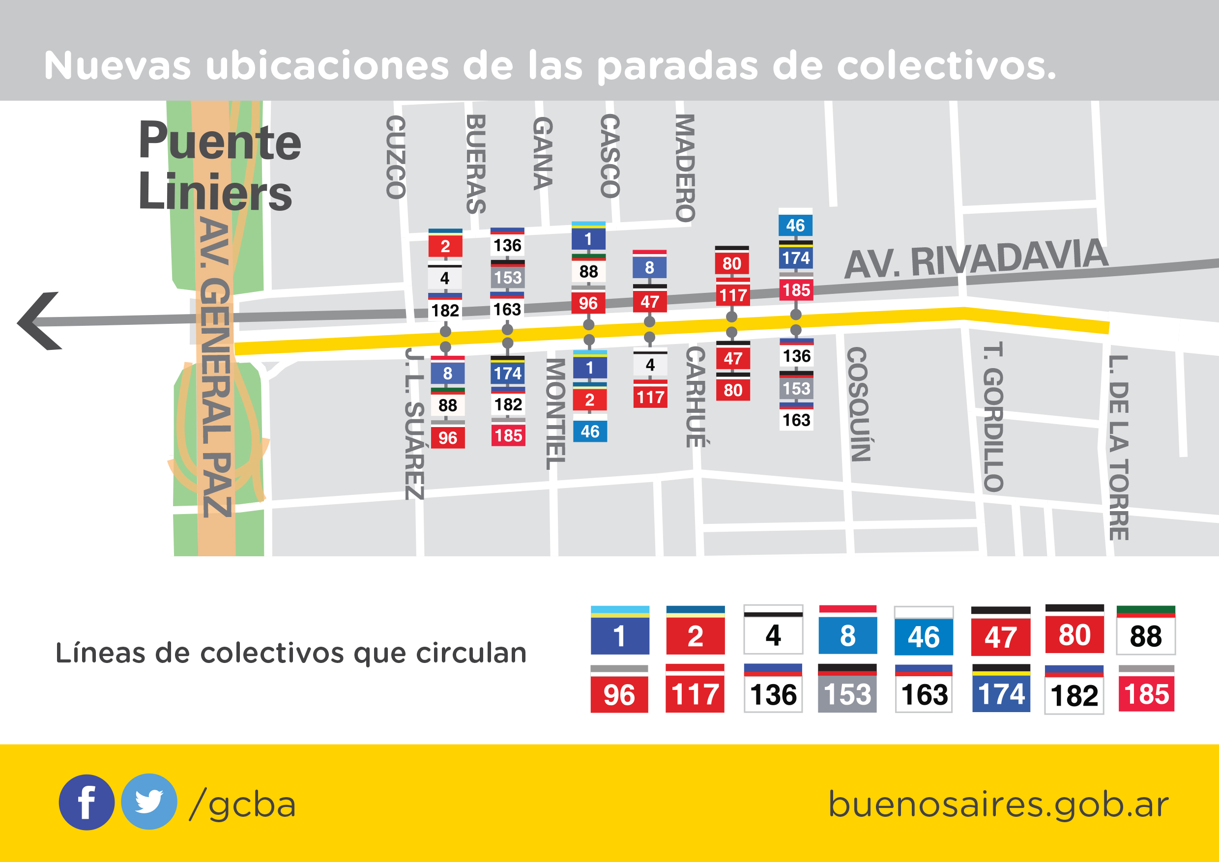 En el marco del Plan de Seguridad Vial del gobierno de la ciudad de Buenos Aires, se ejecutan trabajos en el Centro de Trasbordo Liniers, para mejorar la infraestructura de la zona, lo que implicó cambios temporales de paradas de colectivo.