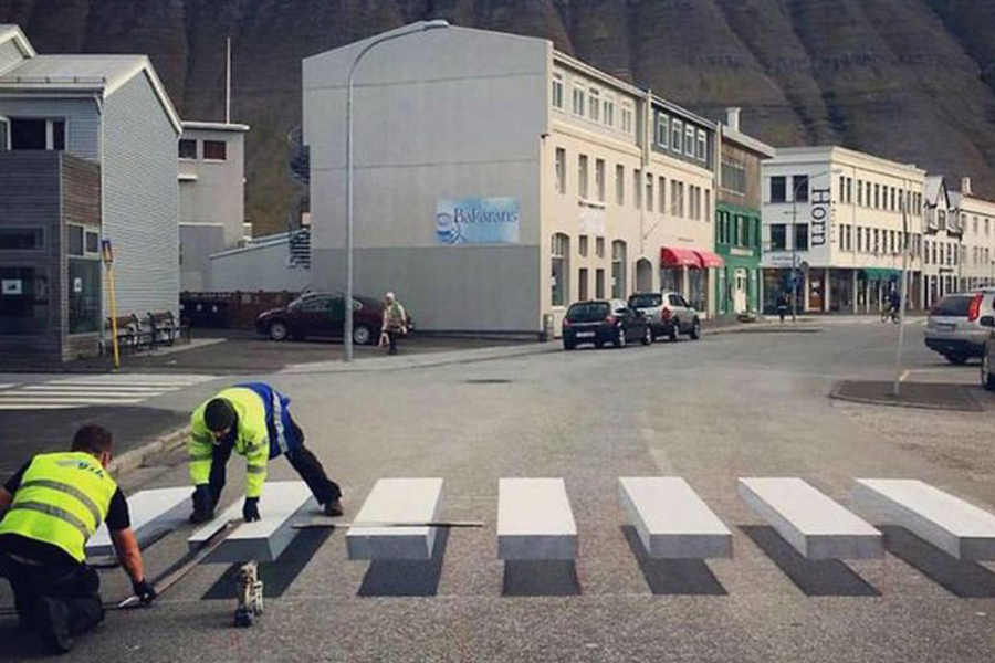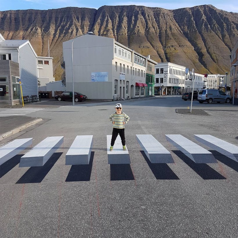En la pequeña ciudad pesquera de Ísafjörður en Islandia, acaba de aparecer un avance en seguridad vial: Pintan las sendas peatonales en 3D, formando una detallada e ingeniosa ilusión óptica.