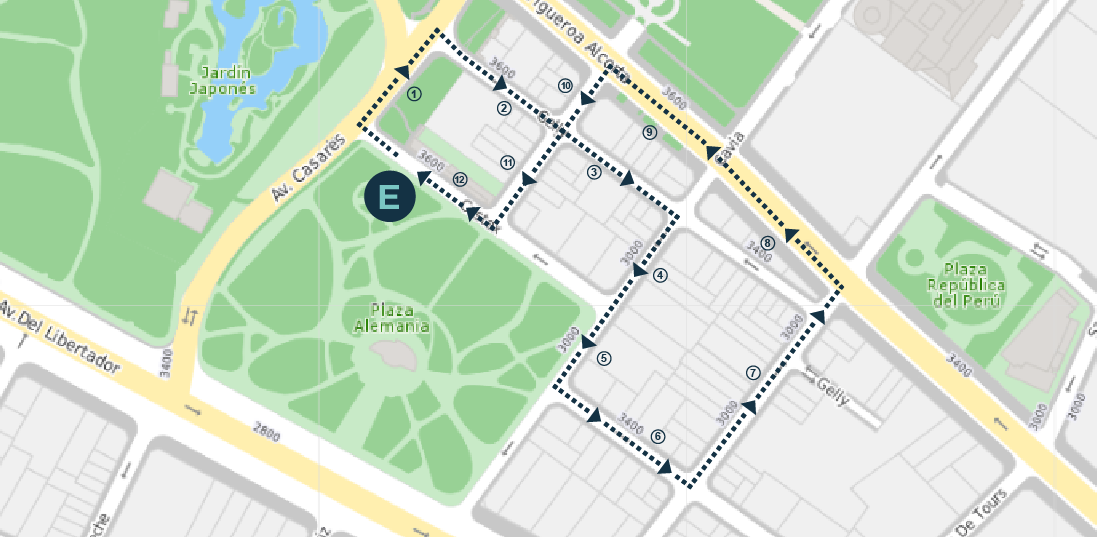El nuevo circuito de manejo para la evaluación en calle de los aspirantes a conductores habilitado en la sede del Automóvil Club Argentino tiene como punto de partida la calle Castex 3699, con continuación hacia la Avenida Casares y las calles Gelly y Cavia, para retomar nuevamente por Castex con giro por Jerónimo Salguero, Avenida Figueroa Alcorta y Scalabrini Ortíz, y retorno hacia el punto inicial.