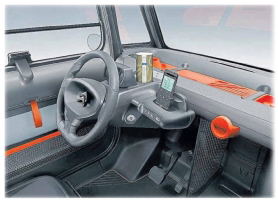 Este vehículo para dos personas mide 2,41 metros de largo(28 cm menos que un Smart). Está alimentado por una batería que puede cargarse en solo 3 horas.